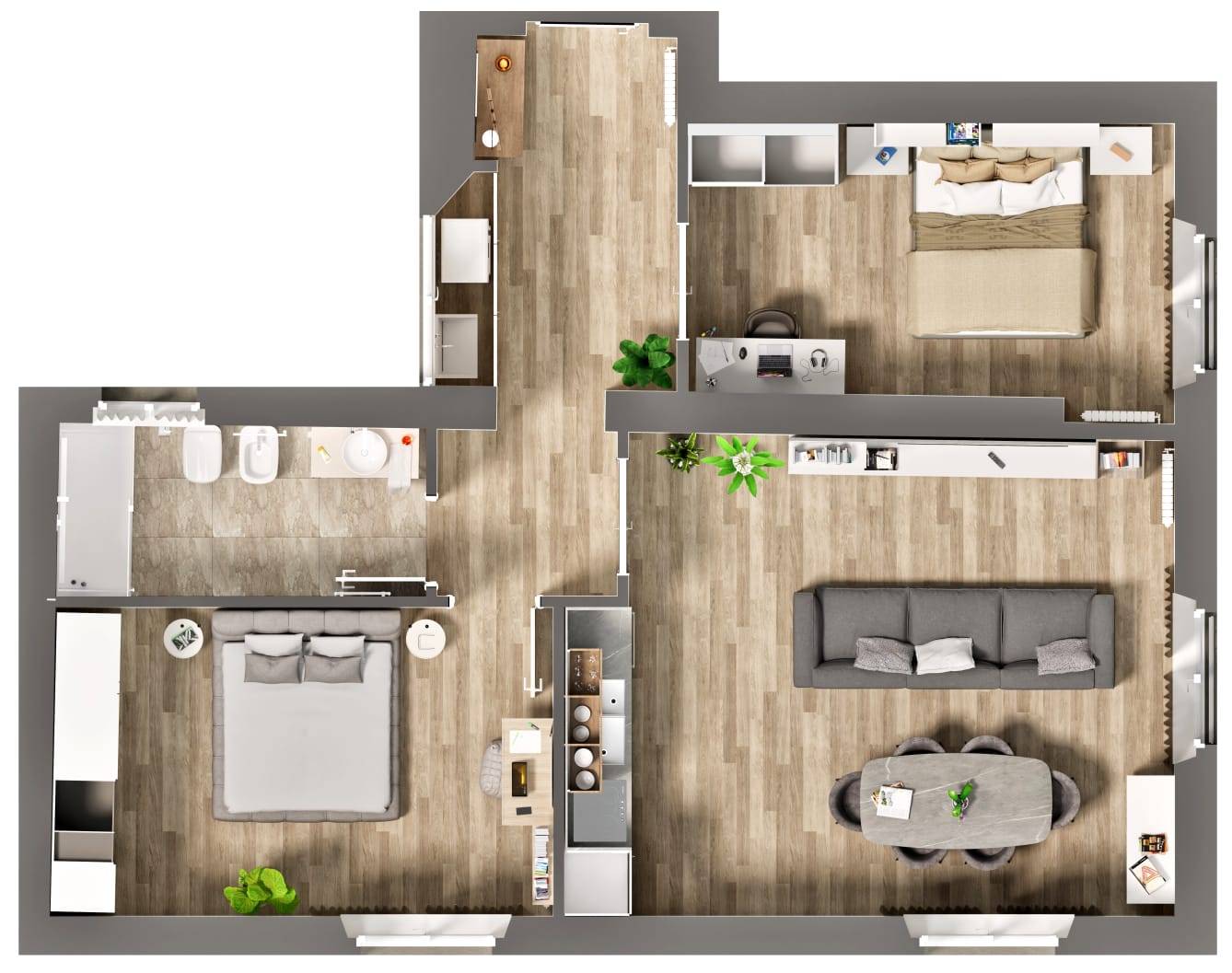 Si possono ancora scegliere le finiture interne: pavimenti, rivestimenti, ecc...